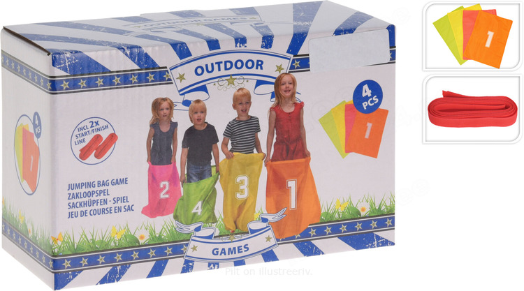 See vanamoodne mäng on nüüd saadaval värviliste kottidega.Komplektis neli erinevat värvi kotti ja stardi/finišijoontega saate rajada kaasas olevate lintidega.Kes ületab esimesena finišijoone on võitja.