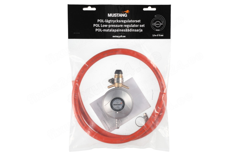 Gaasivoolik 1m / 8mm. Külmakindlus -30°C. Voolikuklambrid 2 tk. Regulaator EN16129, plastmassist seguvoolik EN16436.